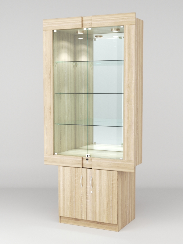 Стеклянные дверки в верхней секции присутствуют, закрываются на замок.