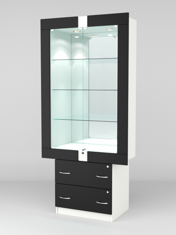 Стеклянные дверки в верхней секции присутствуют, закрываются на замок.