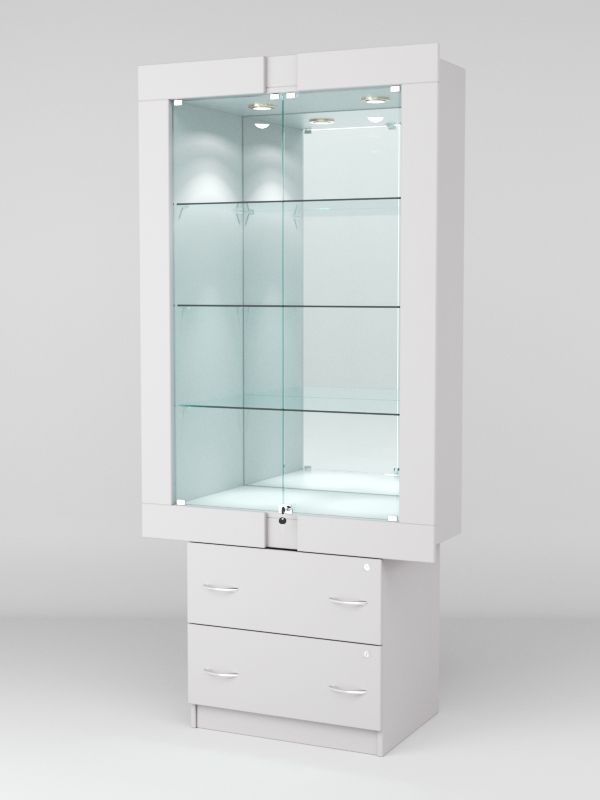 Стеклянные дверки в верхней секции присутствуют, закрываются на замок.