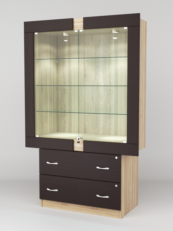 Стеклянные дверки в верхней секции присутствуют, закрываются на замок.