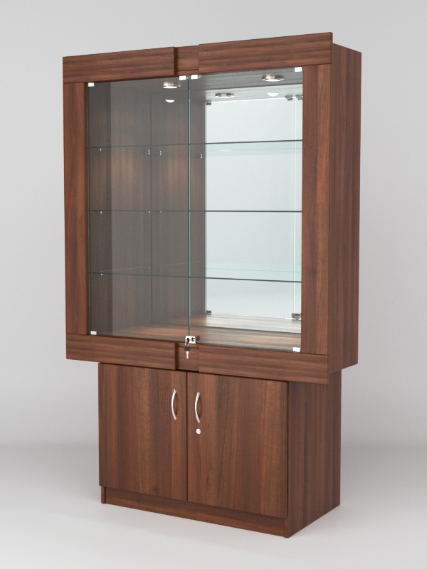 Стеклянные дверки в верхней секции присутствуют, закрываются на замок.