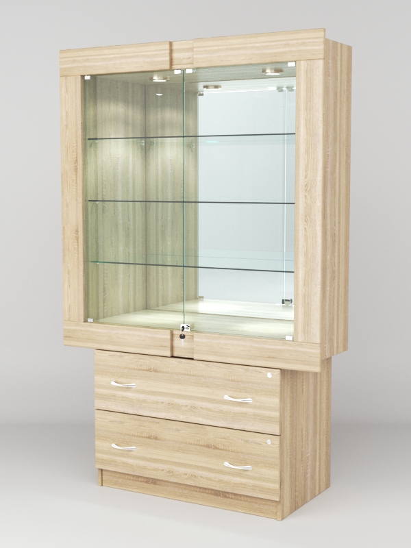Стеклянные дверки в верхней секции присутствуют, закрываются на замок.