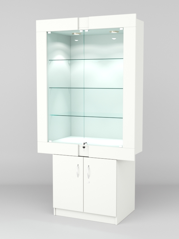 Стеклянные дверки в верхней секции присутствуют, закрываются на замок.