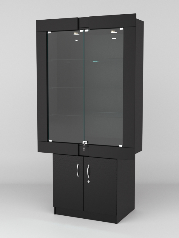 Стеклянные дверки в верхней секции присутствуют, закрываются на замок.