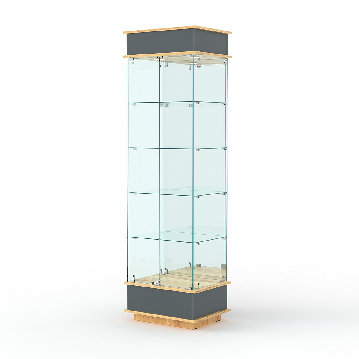 Витрина "ФАНТАЗИЯ" №2-2 (задняя стенка — зеркало), Темно-серый и Дуб Золотистый