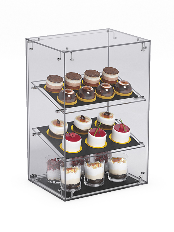 Компактную настольную конструкцию удобно разместить в прикассовой зоне кафе или кондитерской точки.