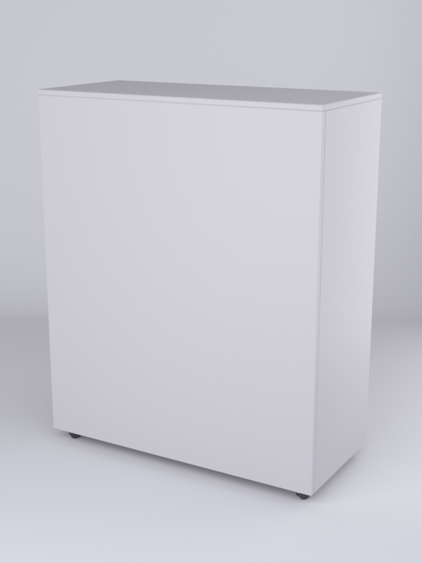 Прилавок предназначен размещения служебного инвентаря и обслуживания покупателей. Форма прилавка прямоугольная. Прилавок полностью закрыт со стороны покупателя. На обратной стороне имеется одно отделение и накопитель с распашными дверцами. Для комфортного перемещения конструкция оборудована колесами. Каркас прилавка выполнен из ЛДСП. Цвет каркаса подбирается в одном из семи вариантов, указанных на сайте.