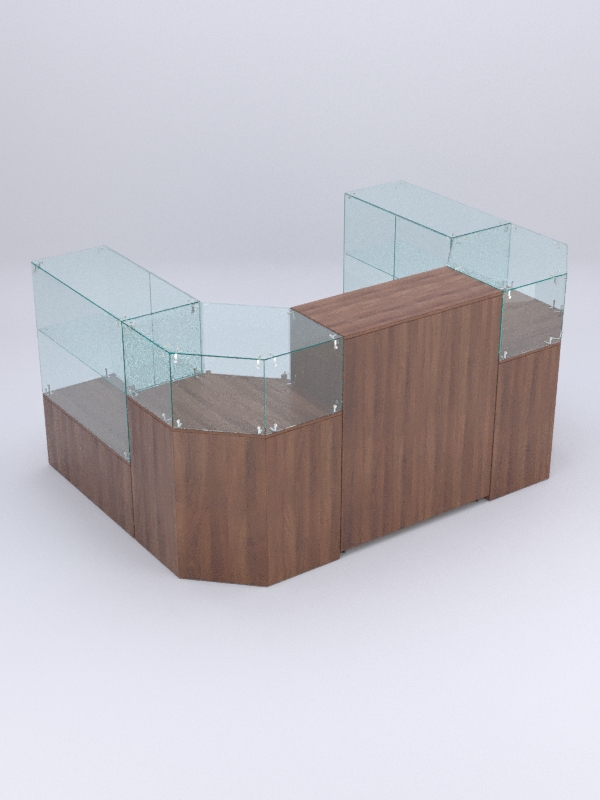 Витрины шестиугольных прилавков не содержат полок. Два шестиугольных прилавка располагаются в углах островка.