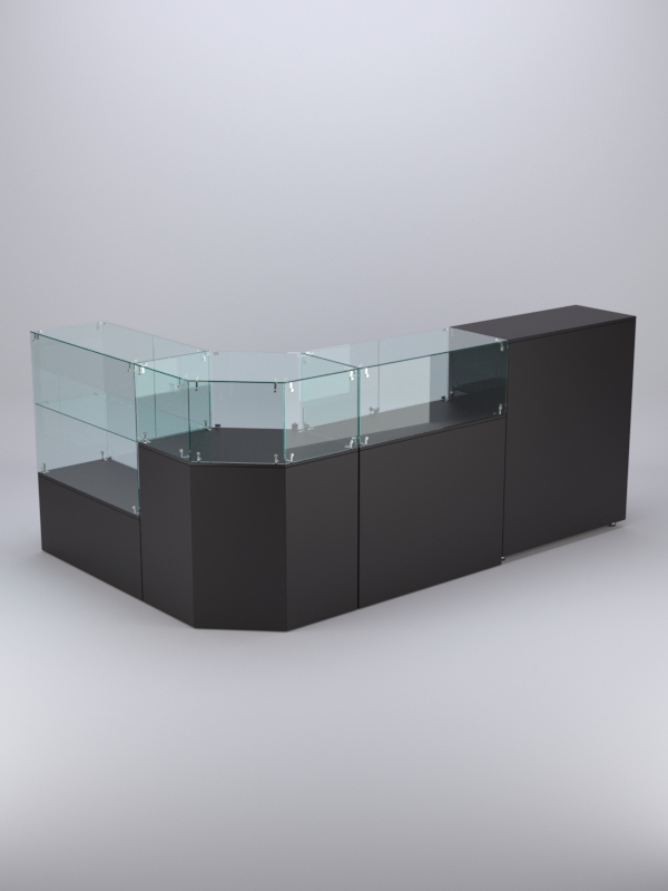 Витрина шестиугольного прилавка также не содержат полок. Шестиугольный прилавок занимает угловую позицию в островке.