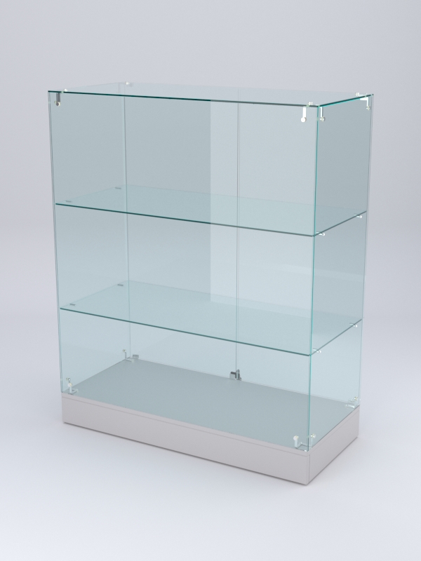 Прилавок имеет прямую конструкцию, состоящую из витрины и основания. Витрина оборудована распашными дверцами, открывающимися со стороны продавца. Дверцы снабжены замком. Внутри имеются две стеклянные полки. Каркас прилавка выполнен из ЛДСП. Цвет каркаса подбирается в одном из семи вариантов, указанных на сайте.