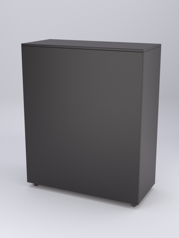 Прилавок предназначен размещения служебного инвентаря и обслуживания покупателей. Форма прилавка прямоугольная. Прилавок полностью закрыт со стороны покупателя. На обратной стороне имеется одно большое отделение и накопитель с распашными дверцами. Для комфортного перемещения конструкция оборудована колесами. Каркас прилавка выполнен из ЛДСП. Цвет каркаса подбирается в одном из семи вариантов, указанных на сайте.
