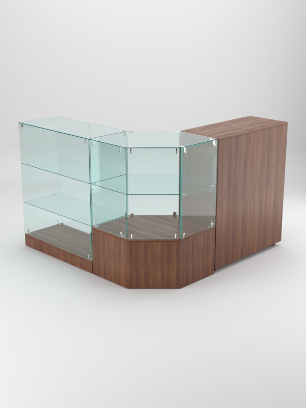 Витрина шестиугольного прилавка содержит одну стеклянную полку.