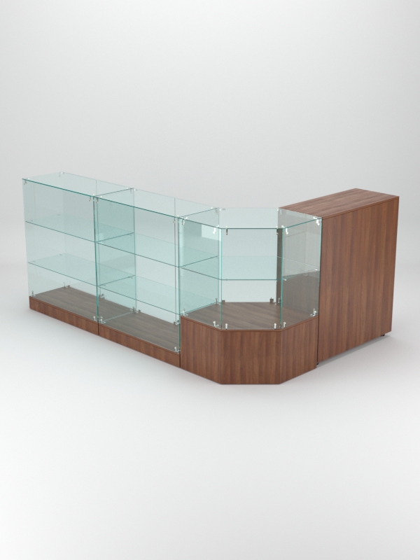 Прямые прилавки располагаются рядом. Каждый прилавок содержит витрину с двумя стеклянными полками.