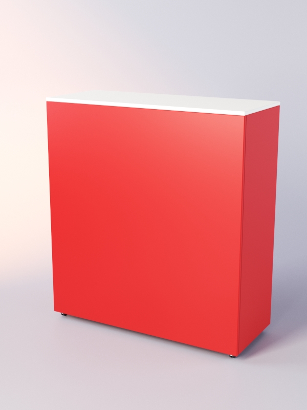 Внешняя сторона прилавка полностью закрыта со стороны покупателя. С внутренней стороны имеется большое отделение и накопитель с распашными дверцами.