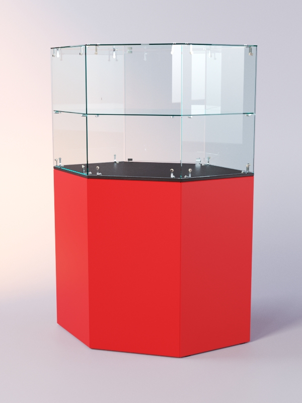 Каркас прилавка выполнен из ЛДСП. Корпус и полка витрины стеклянные. Витрина и накопитель оборудованы распашными дверками, открывающимися со стороны продавца.