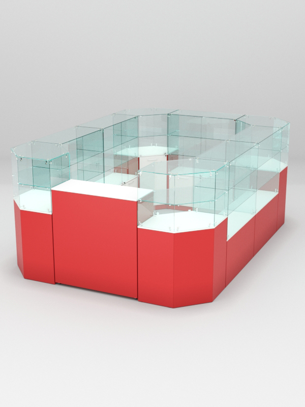 Каркас прилавков выполнен из ЛДСП. Корпус и полки витрин изготовлены из стекла. Витрины содержат 1-2 полки. Нагрузка на одну полку составляет 5-7кг, с условием равномерного распределения товаров.