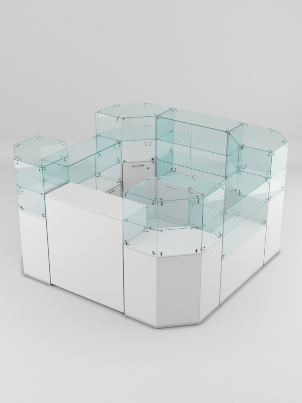 Каркас прилавков выполнен из ЛДСП. Корпус и полки витрин изготовлены из стекла. Витрины содержат 1-2 полки. Нагрузка на одну полку составляет 5-7кг, с условием равномерного распределения товаров.