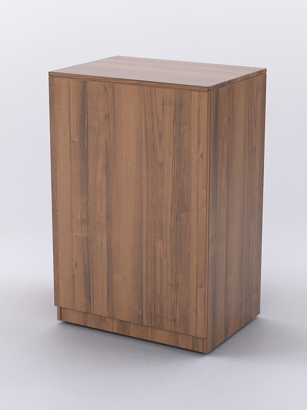 Закрытый прилавок предназначен для обслуживания покупателей. Также выполняет функцию двери в торговом островке, в связи с чем оборудован колесами. С внутренней стороны прилавка расположены две полки.