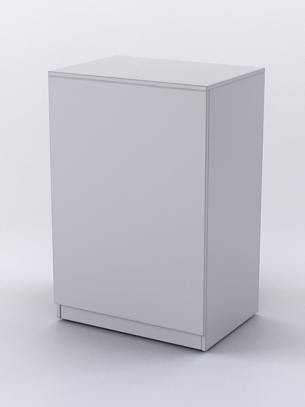 Закрытый прилавок предназначен для обслуживания покупателей. Также выполняет функцию двери в торговом островке, в связи с чем оборудован колесами. С внутренней стороны прилавка расположены две полки.