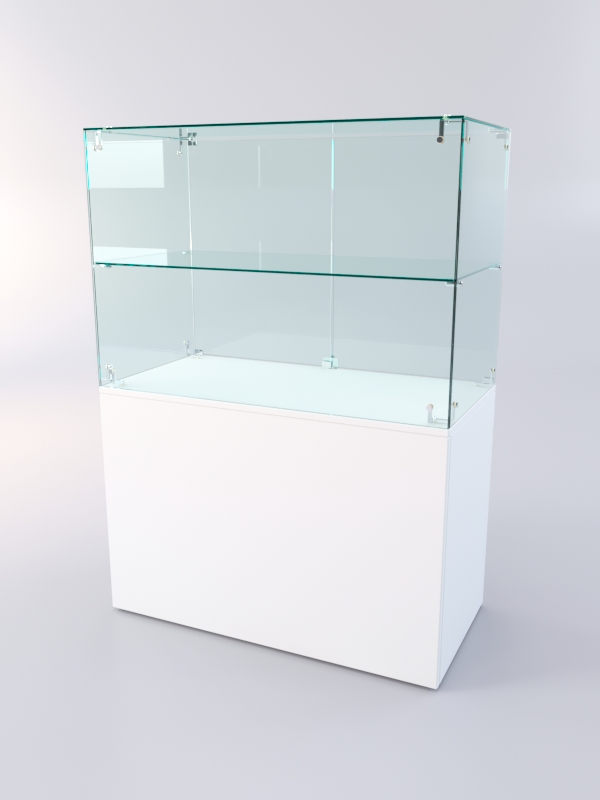 Большая прозрачная витрина с полкой из стекла, которая обеспечивает удобное размещение товаров до 5-7 кг при равномерном распределении.