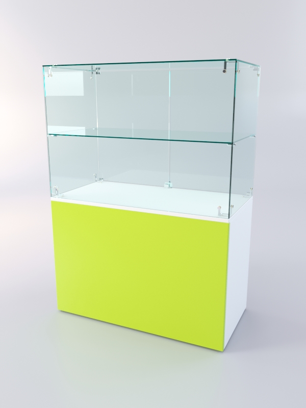 Большая прозрачная витрина с полкой из стекла, которая обеспечивает удобное размещение товаров до 5-7 кг при равномерном распределении.
