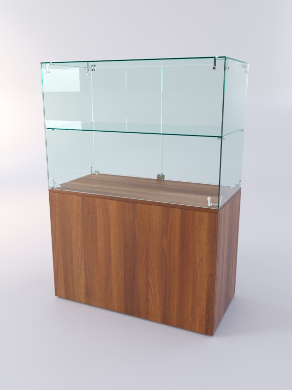 Накопитель изготовлен из ЛДСП, корпус витрины — стеклянный.