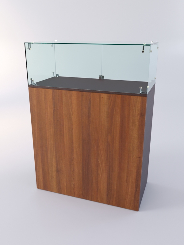 Накопитель изготовлен из ЛДСП, корпус витрины — стеклянный.