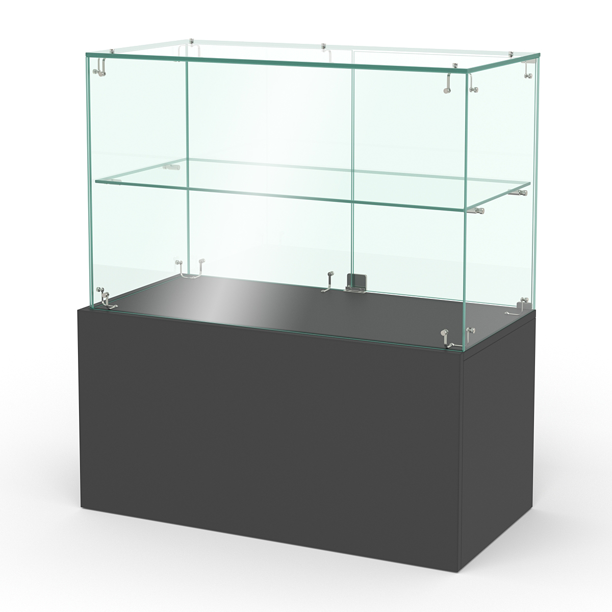 Накопитель изготовлен из ЛДСП, корпус витрины — стеклянный.