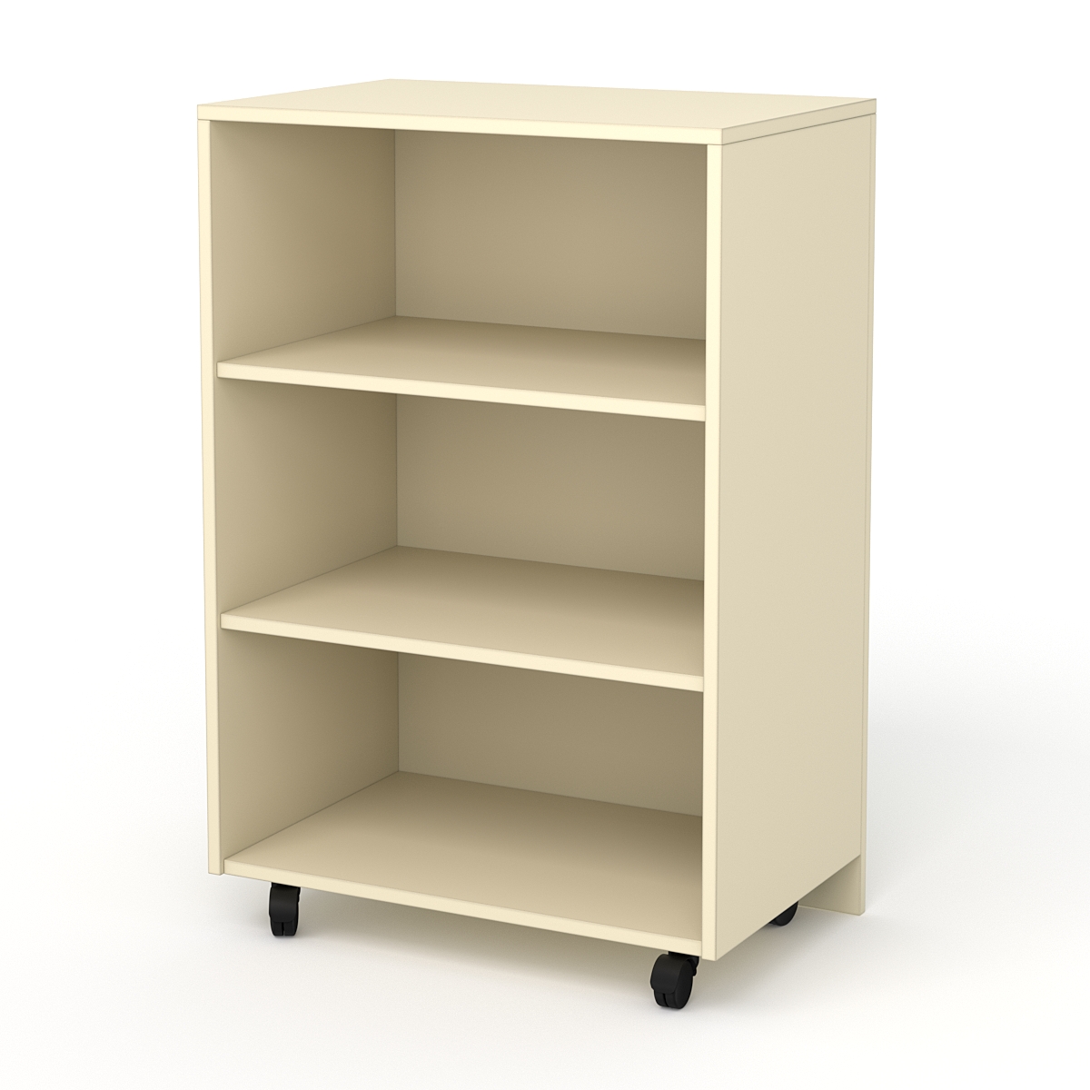 С лицевой стороны модель полностью закрыта. Внутренняя сторона оборудована двумя полками для размещения служебного инвентаря. Прилавок также служит входом в рабочую зону продавца, поэтому для удобства снабжен колесами.