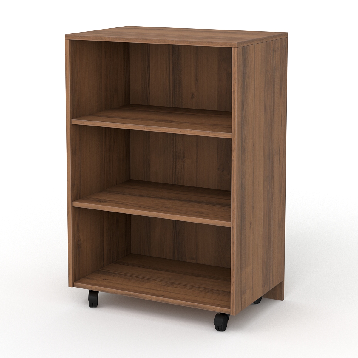 С лицевой стороны модель полностью закрыта. Внутренняя сторона оборудована двумя полками для размещения служебного инвентаря. Прилавок также служит входом в рабочую зону продавца, поэтому для удобства снабжен колесами.