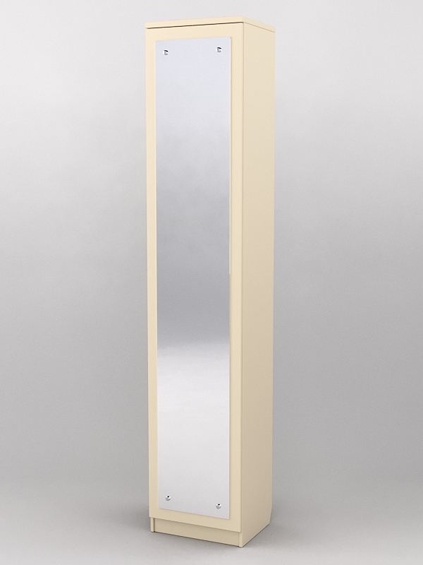 Конструкция представляет собой узкий шкаф с дверью. На двери располагается зеркало в полный рост.