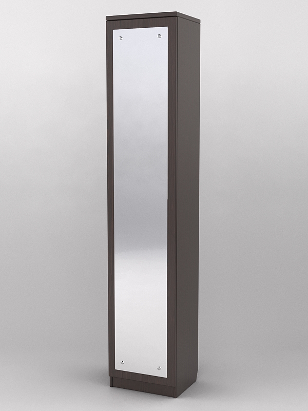 Конструкция представляет собой узкий шкаф с дверью. На двери располагается зеркало в полный рост.