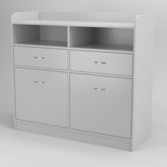 Станция двойная. Каркас из ДСП. Фурнитура — металл, хром. Конструкция состоит из двух выдвижных ящиков и двух шкафчиков с дверцами.