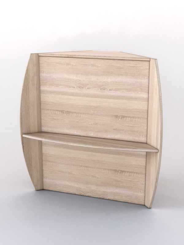 Закрытый прилавок предназначен для демонстрации товара покупателю в магазине или островке по продаже сувениров, бижутерии, косметики. Данная модель служит для соединения прямых прилавков в комплекте. На фасаде расположена полка для сумок. Внутри прилавка имеются три полки для хранения ассортимента. Прилавок выполнен из ЛДСП. Цвет представлен в семи стандартных вариантах; другие цвета подбираются в палитре на заказ.