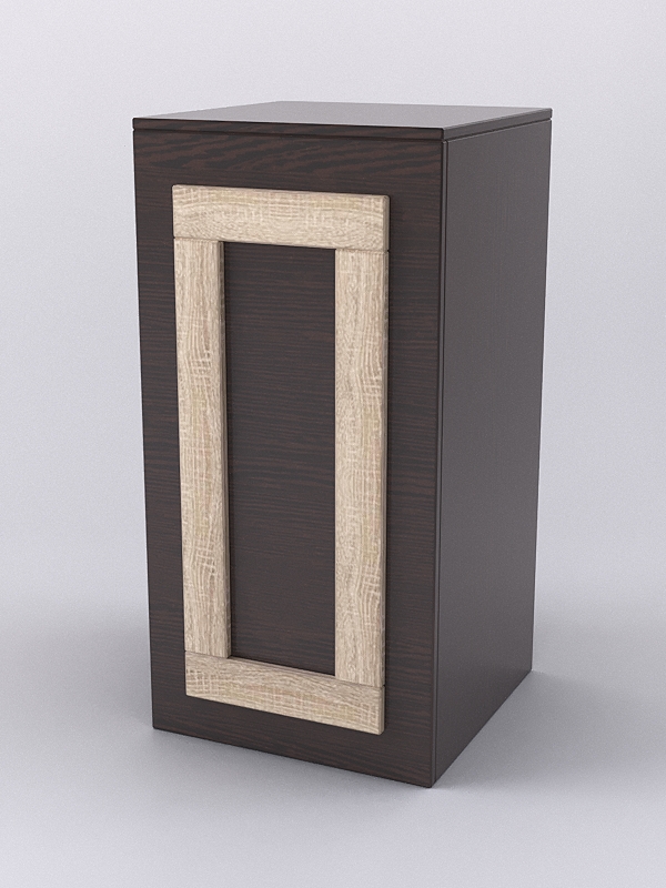 Прилавок предназначен для демонстрации сувениров, предметов декора, парфюмерии. Фасад полностью закрытый, декорирован прямоугольником контрастного цвета. С внутренней стороны прилавка имеется полка, разбивающая его зону на два больших отсека. Каркас выполнен из ЛДСП. Имеется семь стандартных расцветок. Другие цвета подбираются в палитре на заказ.