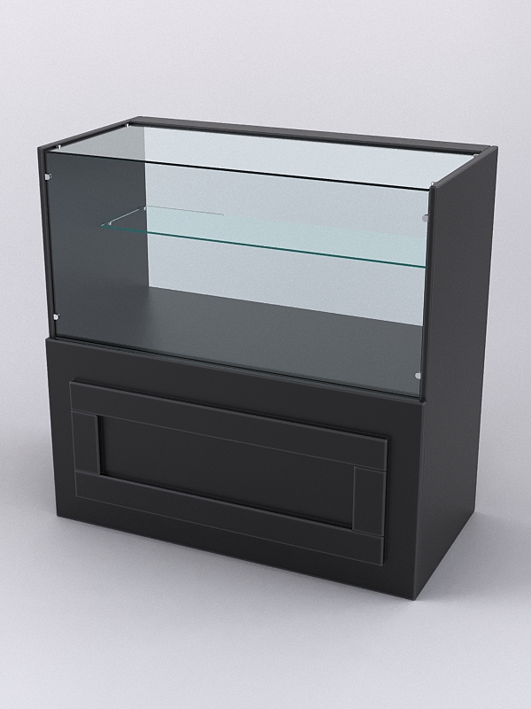 Каркас прилавка выполнен из ЛДСП. Корпус и полка витрины — стеклянные. При равномерном распределении товара нагрузка на полку составляет 5-7кг.