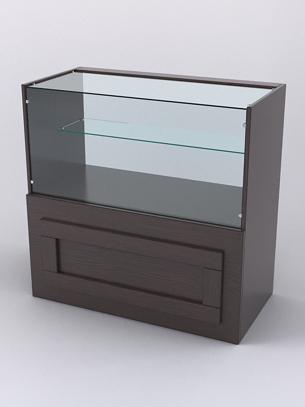 Каркас прилавка выполнен из ЛДСП. Корпус и полка витрины — стеклянные. При равномерном распределении товара нагрузка на полку составляет 5-7кг.