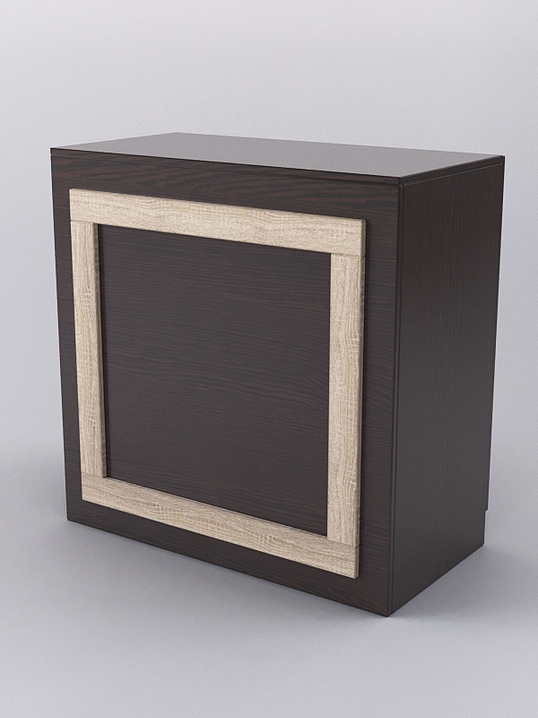 Конструкция представляет собой тумбу с распашными дверцами, открывающимися со стороны продавца. Внутри тумбы имеется полка.