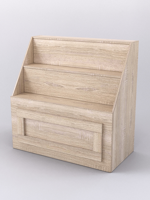 Демонстрационная часть конструкции представляет собой наклонную ступенчатую поверхность. Полки-ступени помогают свободно расположить товары и обеспечивают хороший обзор.