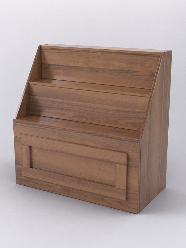 Демонстрационная часть конструкции представляет собой наклонную ступенчатую поверхность. Полки-ступени помогают свободно расположить товары и обеспечивают хороший обзор.
