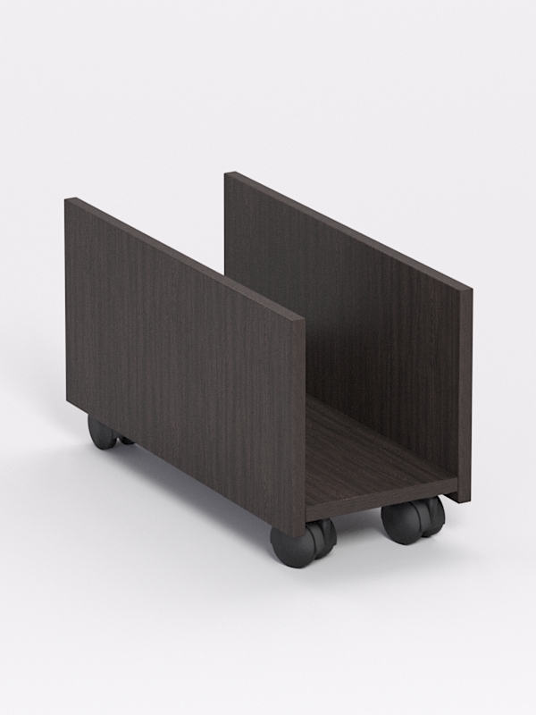 Подставка под системный блок на колесах. Подойдет для правильной установки системного блока и комфортной работы пользователя. Представляет деревянную платформу на колесиках, с двух сторон ограниченную перегородками. По размерам изделие рассчитано на стандартный системный блок. Четыре колесика дают возможность перемещать подставку, не царапая пол, устанавливая ее возле стола или под ним. Может использоваться дома или в офисе.