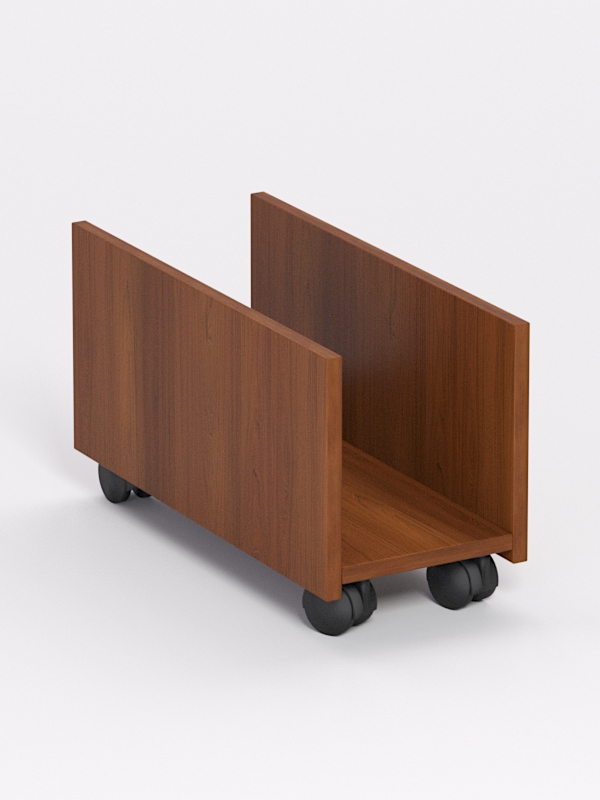 Подставка под системный блок на колесах. Подойдет для правильной установки системного блока и комфортной работы пользователя. Представляет деревянную платформу на колесиках, с двух сторон ограниченную перегородками. По размерам изделие рассчитано на стандартный системный блок. Четыре колесика дают возможность перемещать подставку, не царапая пол, устанавливая ее возле стола или под ним. Может использоваться дома или в офисе.