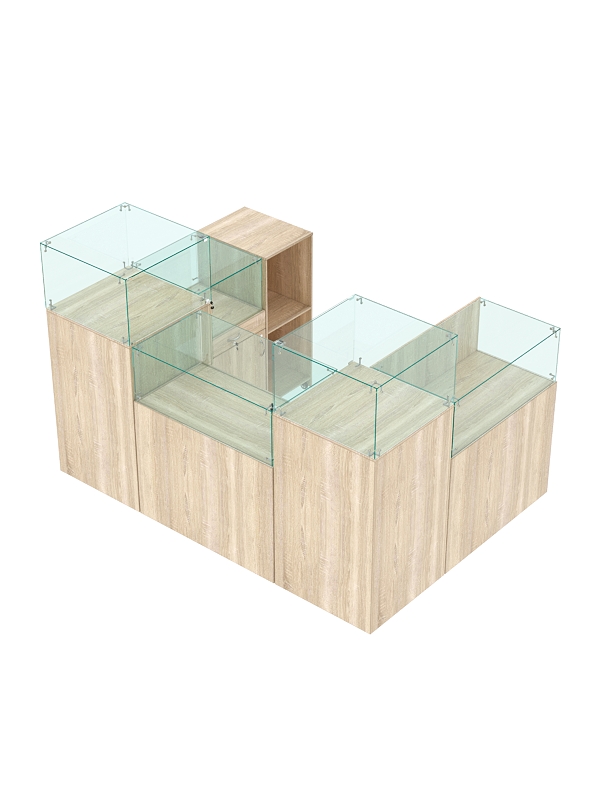 В ограниченной выделенной зоне вы можете разместить ювелирные украшения, салон сотовой связи и любые другие премиальные товары. Предусмотрены прилавки со стеклянным куполом и витрины из стекла для эффективной демонстрации предметов, закрытые тумбы с распашными дверками и выдвижные ящики для удобного хранения упаковки и инвентаря. На столах есть место для кассовой зоны