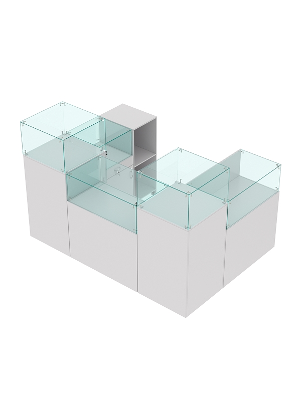 В ограниченной выделенной зоне вы можете разместить ювелирные украшения, салон сотовой связи и любые другие премиальные товары. Предусмотрены прилавки со стеклянным куполом и витрины из стекла для эффективной демонстрации предметов, закрытые тумбы с распашными дверками и выдвижные ящики для удобного хранения упаковки и инвентаря. На столах есть место для кассовой зоны