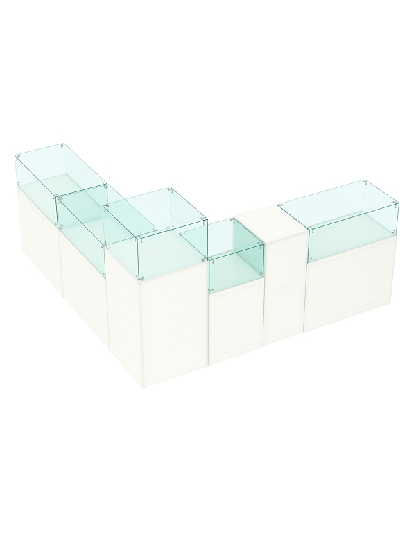 В ограниченной выделенной зоне вы можете разместить ювелирные украшения, салон сотовой связи и любые другие премиальные товары. Предусмотрены прилавки со стеклянным куполом и витрины из стекла для эффективной демонстрации предметов, закрытые тумбы с распашными дверками и выдвижные ящики для удобного хранения упаковки и инвентаря. На столах есть место для кассовой зоны