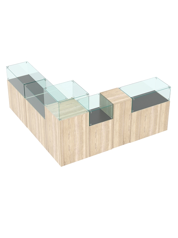 В ограниченной выделенной зоне вы можете разместить ювелирные украшения, салон сотовой связи и любые другие премиальные товары. Предусмотрены прилавки со стеклянным куполом и витрины из стекла для эффективной демонстрации предметов, закрытые тумбы с распашными дверками и выдвижные ящики для удобного хранения упаковки и инвентаря. На столах есть место для кассовой зоны