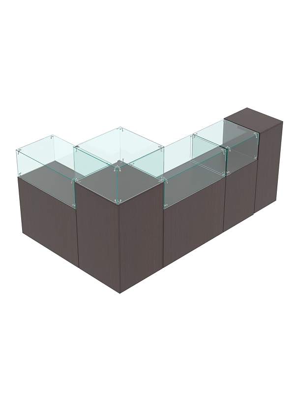 В ограниченной выделенной зоне вы можете разместить ювелирные украшения, салон сотовой связи и любые другие премиальные товары. Предусмотрены прилавки со стеклянным куполом и витрины из стекла для эффективной демонстрации предметов, закрытые тумбы с распашными дверками и выдвижные ящики для удобного хранения упаковки и инвентаря. На столах есть место для кассовой зоны