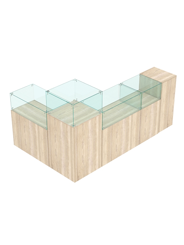 В ограниченной выделенной зоне вы можете разместить ювелирные украшения, салон сотовой связи и любые другие премиальные товары. Предусмотрены прилавки со стеклянным куполом и витрины из стекла для эффективной демонстрации предметов, закрытые тумбы с распашными дверками и выдвижные ящики для удобного хранения упаковки и инвентаря. На столах есть место для кассовой зоны