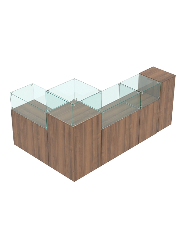 В ограниченной выделенной зоне вы можете разместить ювелирные украшения, салон сотовой связи и любые другие премиальные товары. Предусмотрены прилавки со стеклянным куполом и витрины из стекла для эффективной демонстрации предметов, закрытые тумбы с распашными дверками и выдвижные ящики для удобного хранения упаковки и инвентаря. На столах есть место для кассовой зоны