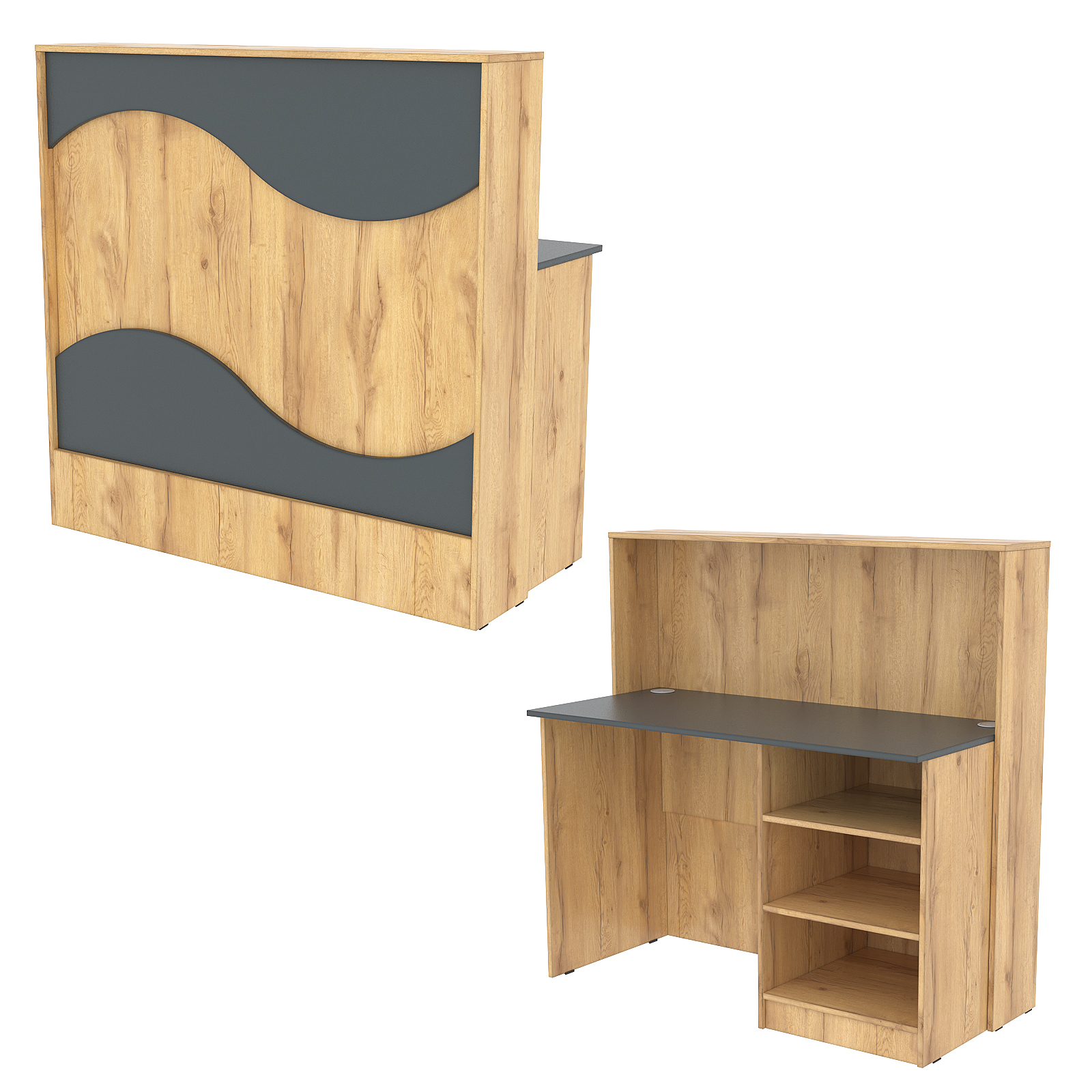 Ресепшн "Нежность Волны" №1А с правосторонней открытой тумбой, Дуб Золотистый и Темно-Серый